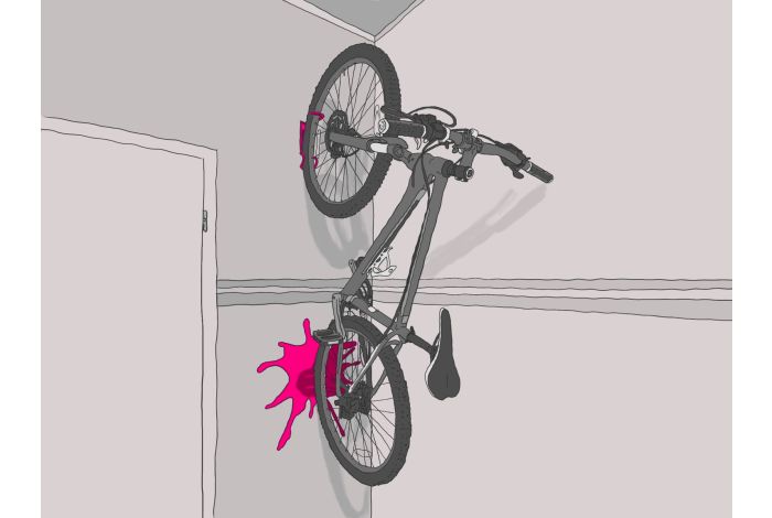 Das Fahrrad an der Wand aufhängen ist eine gute Lösung. Wären da nicht, vorallem im Frühjahr und Herbst, die dreckigen Reifen.